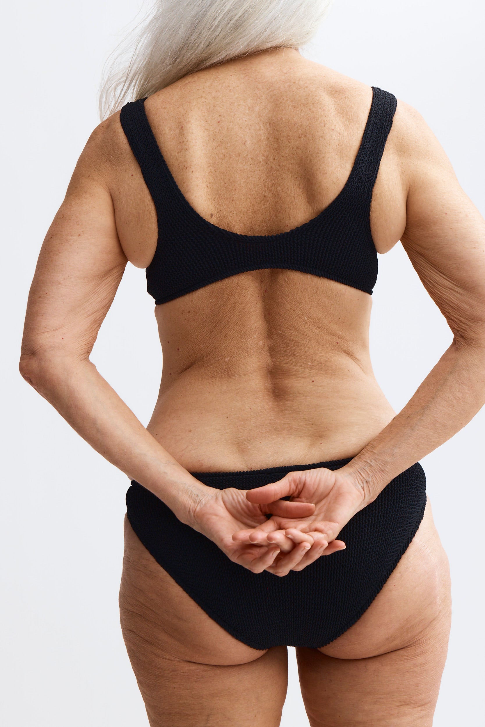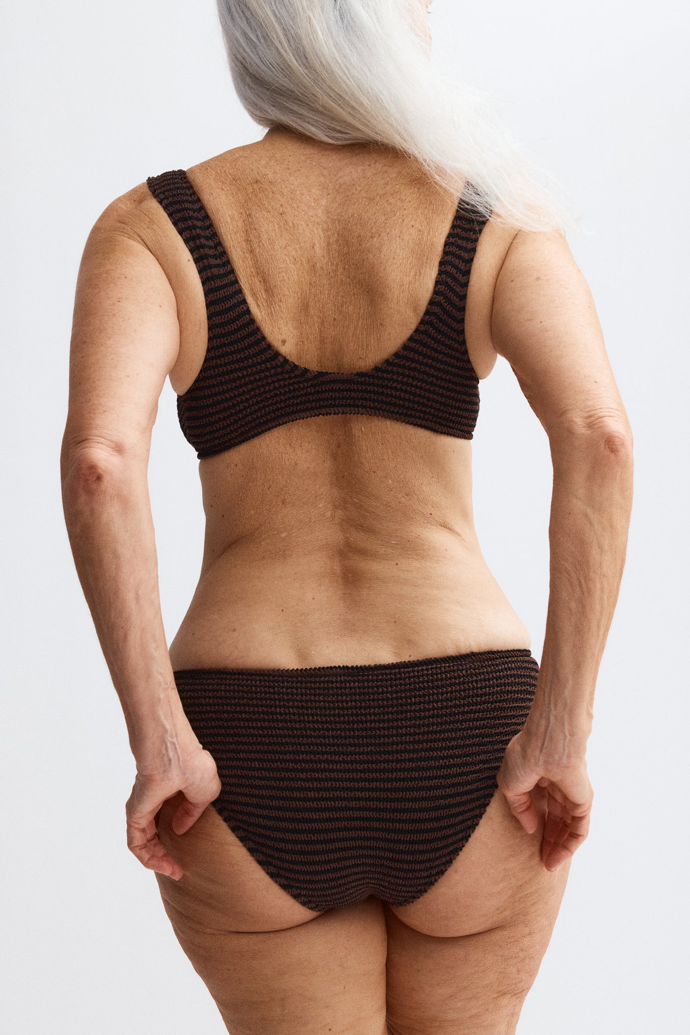 No side-seams means no restrictions. Paired with our specially-designed cuts, our swimsuits accommodate traditional sizes 6 to 28 (UK) in just two — Stretch I and Stretch II.