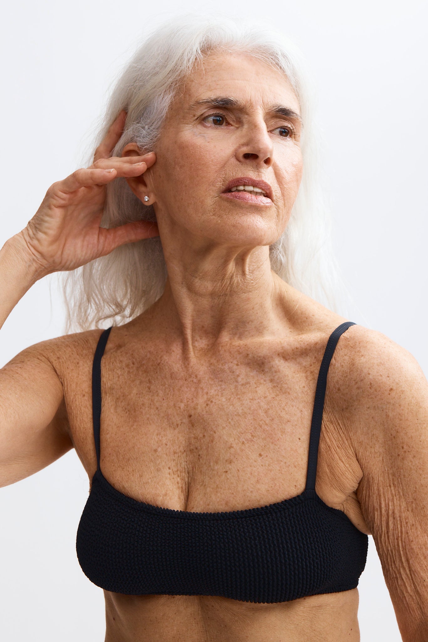 The Poise bikini top is a sophisticated silhouette featuring a simple square neckline and narrow adjustable straps. Poise comfortably fits up to a D cup.
